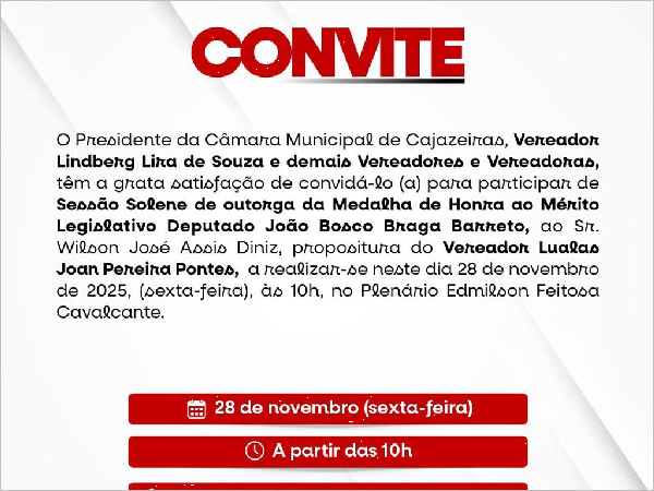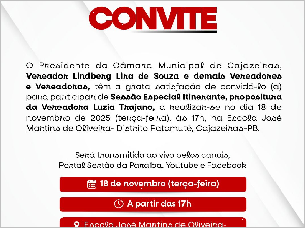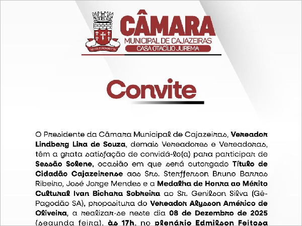 HojePROPOSITURA DO VEREADOR LINDBERG LIRA