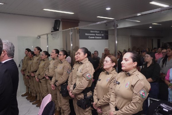 O evento reuniu policiais femininas, para uma homenagem na sessão, sendo uma iniciativa que visa reconhecer a relevante atuação dessas profissionais,