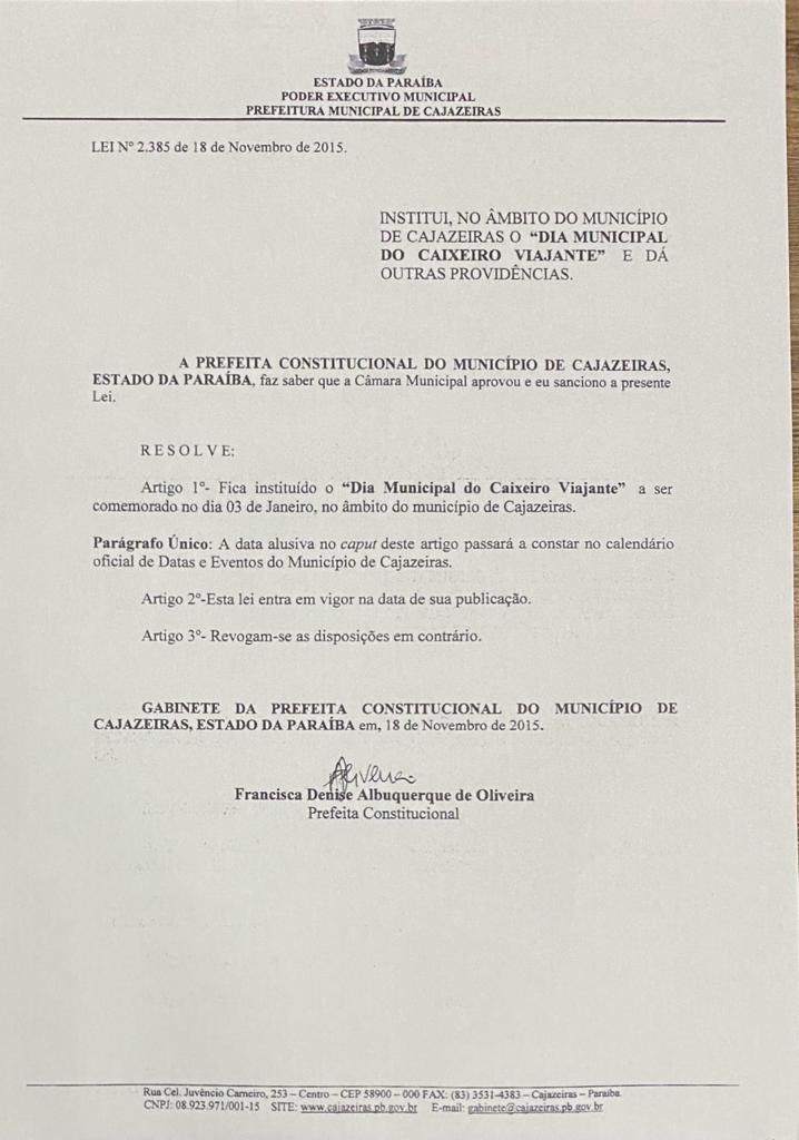03 de Janeiro, Dia Municipal do Caixeiro Viajante