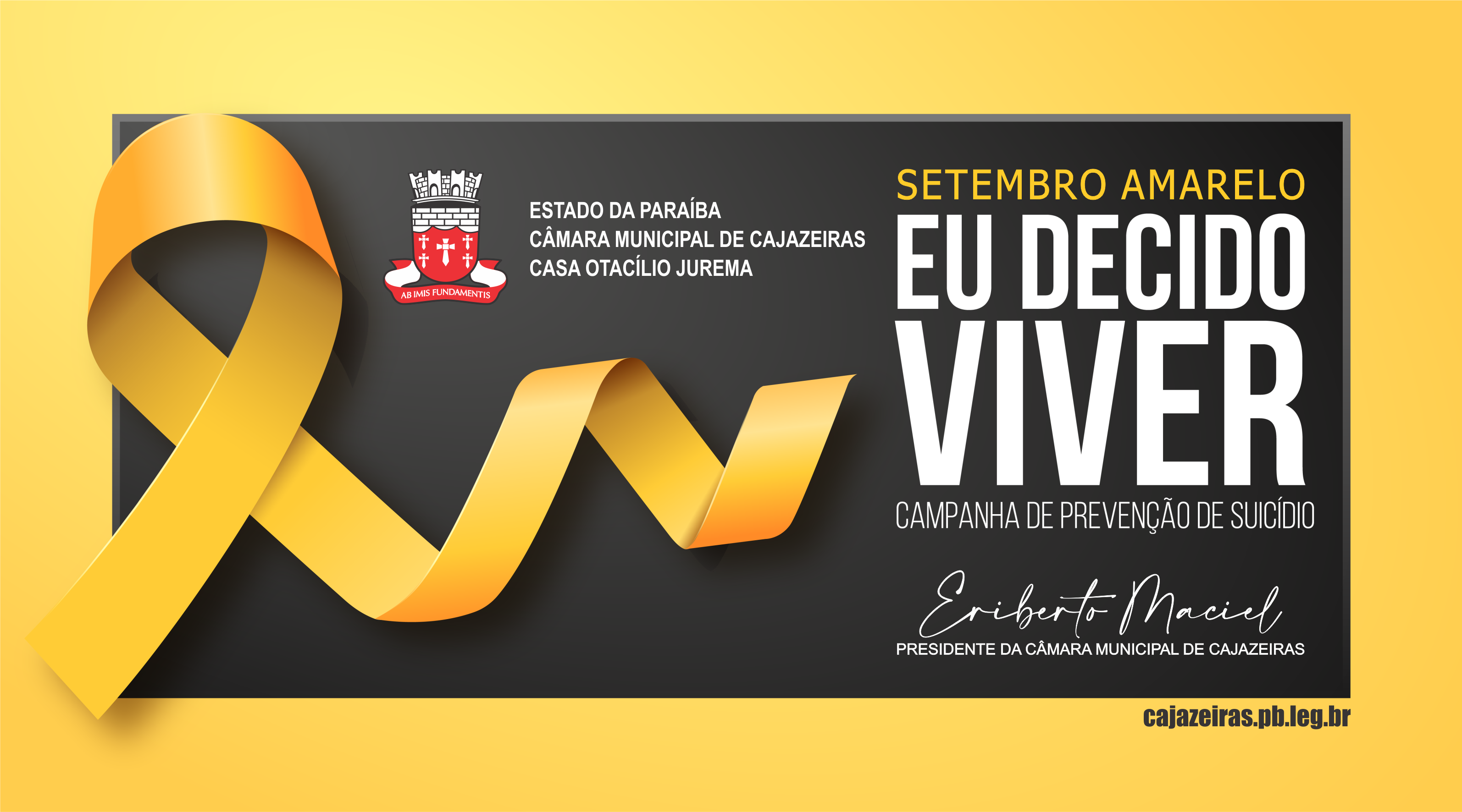 O Presidente da Câmara Municipal de Cajazeiras/PB, o Senhor Eriberto Maciel (PP) reforça a campanha do Setembro Amarelo na conscientização sobre a Prevenção do Suicídio.