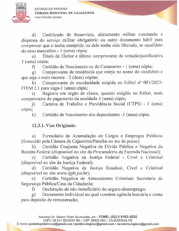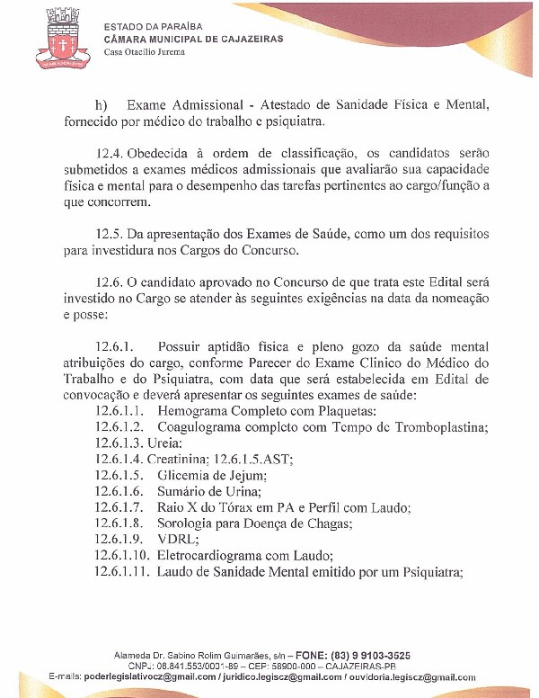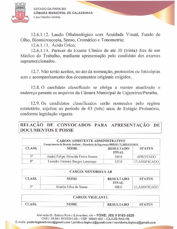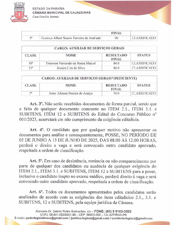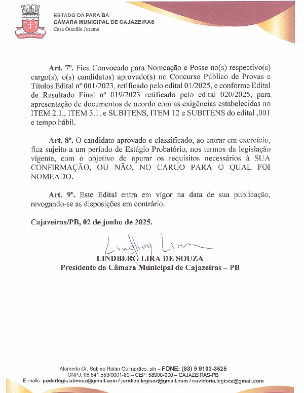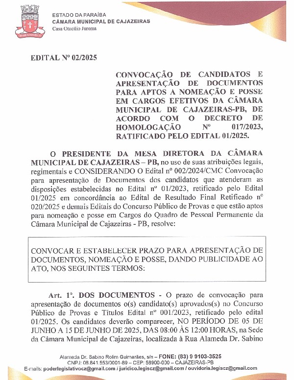 DE ACORDO COM O DECRETO DE HOMOLOGAÇÃO Nº 017/2023, RATIFICADO PELO EDITAL 01/2025.
