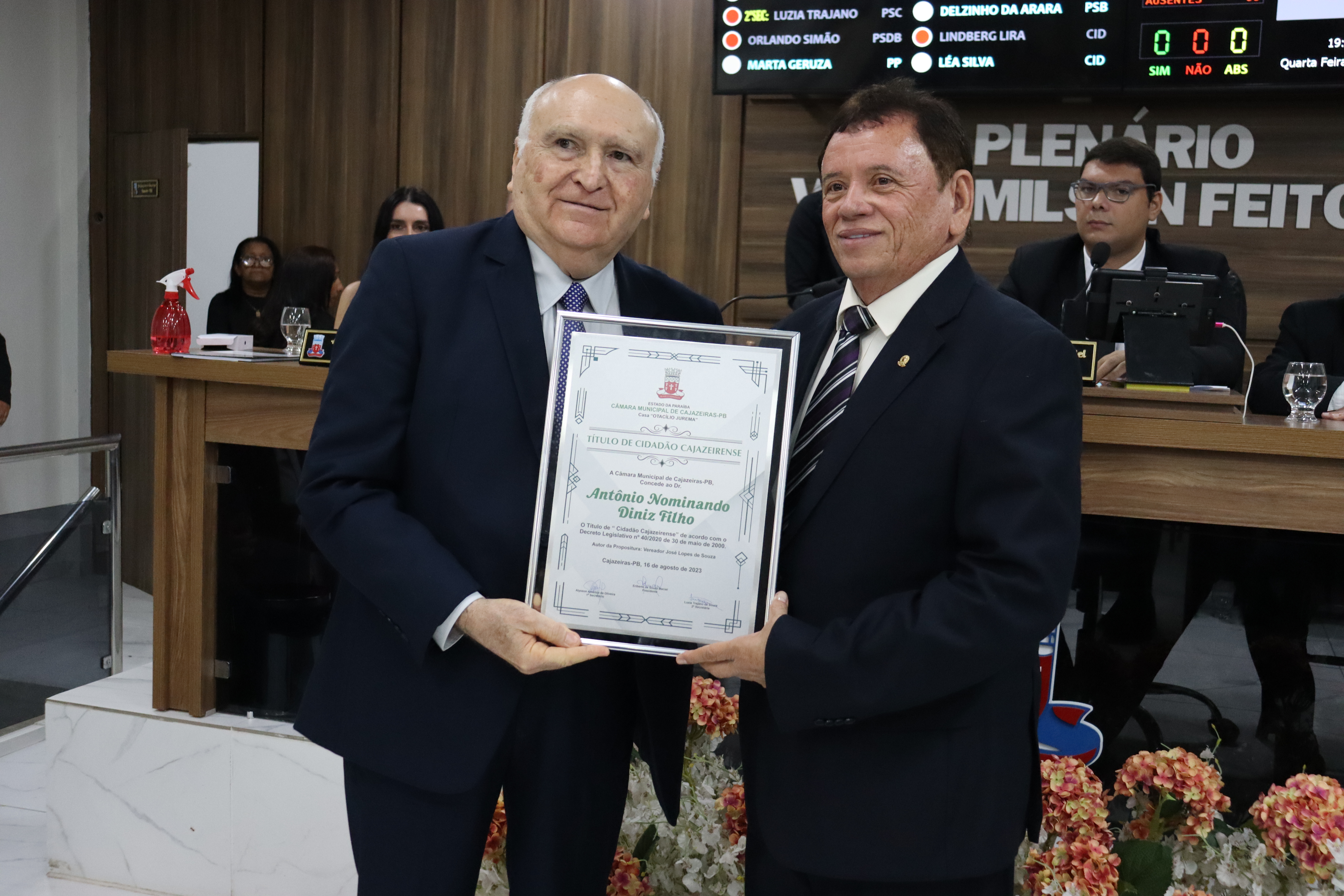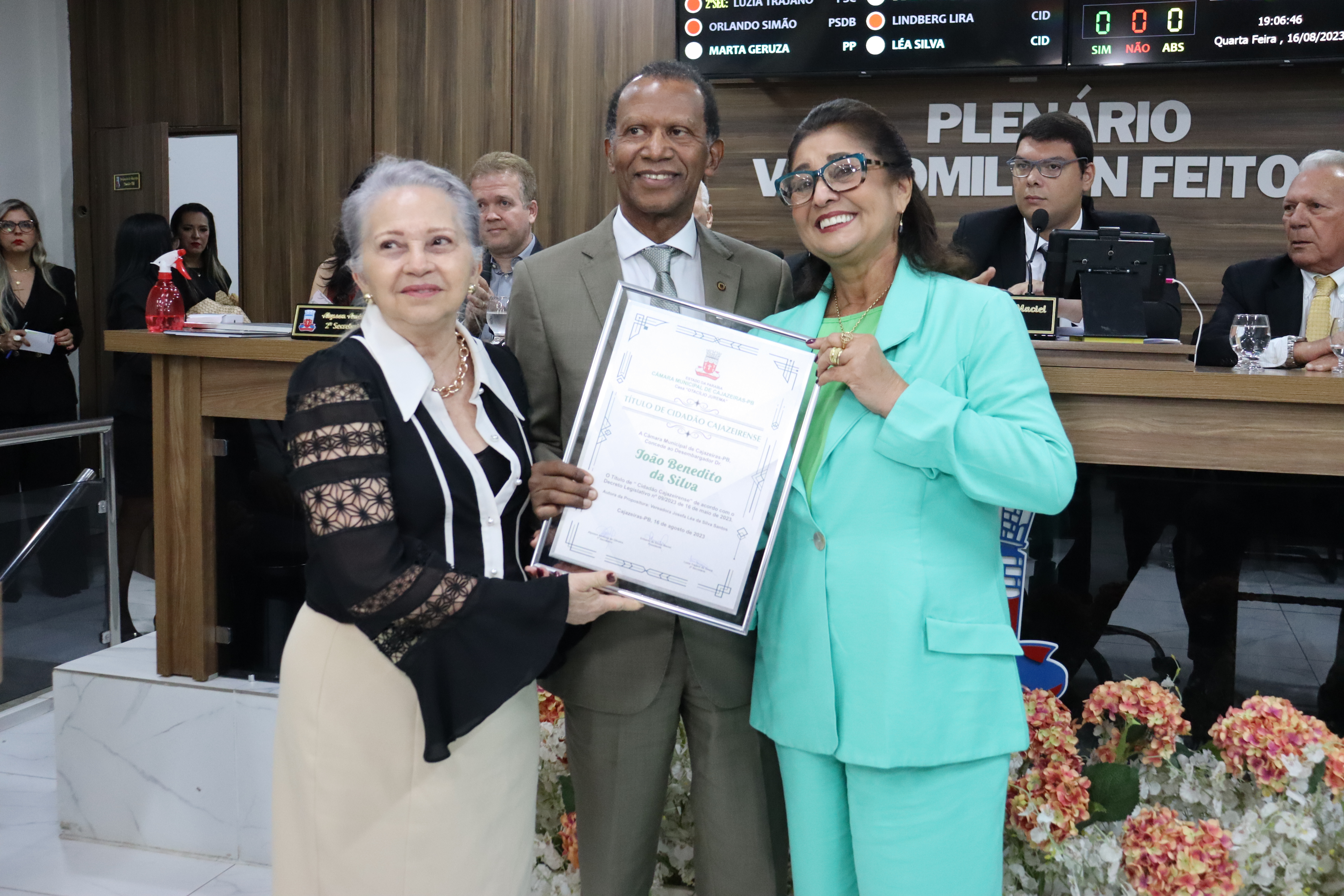 Foram agraciados com os títulos os Srs. João Benedito da Silva, Presidente do TJ/PB, Dr. Nominando Diniz Filho - Presidente do TCE/PB e ao Dr. Alexandre Augusto Ramalho Araruna. Propositura dos vereadores Léa Silva, ex vereador José Lopes d